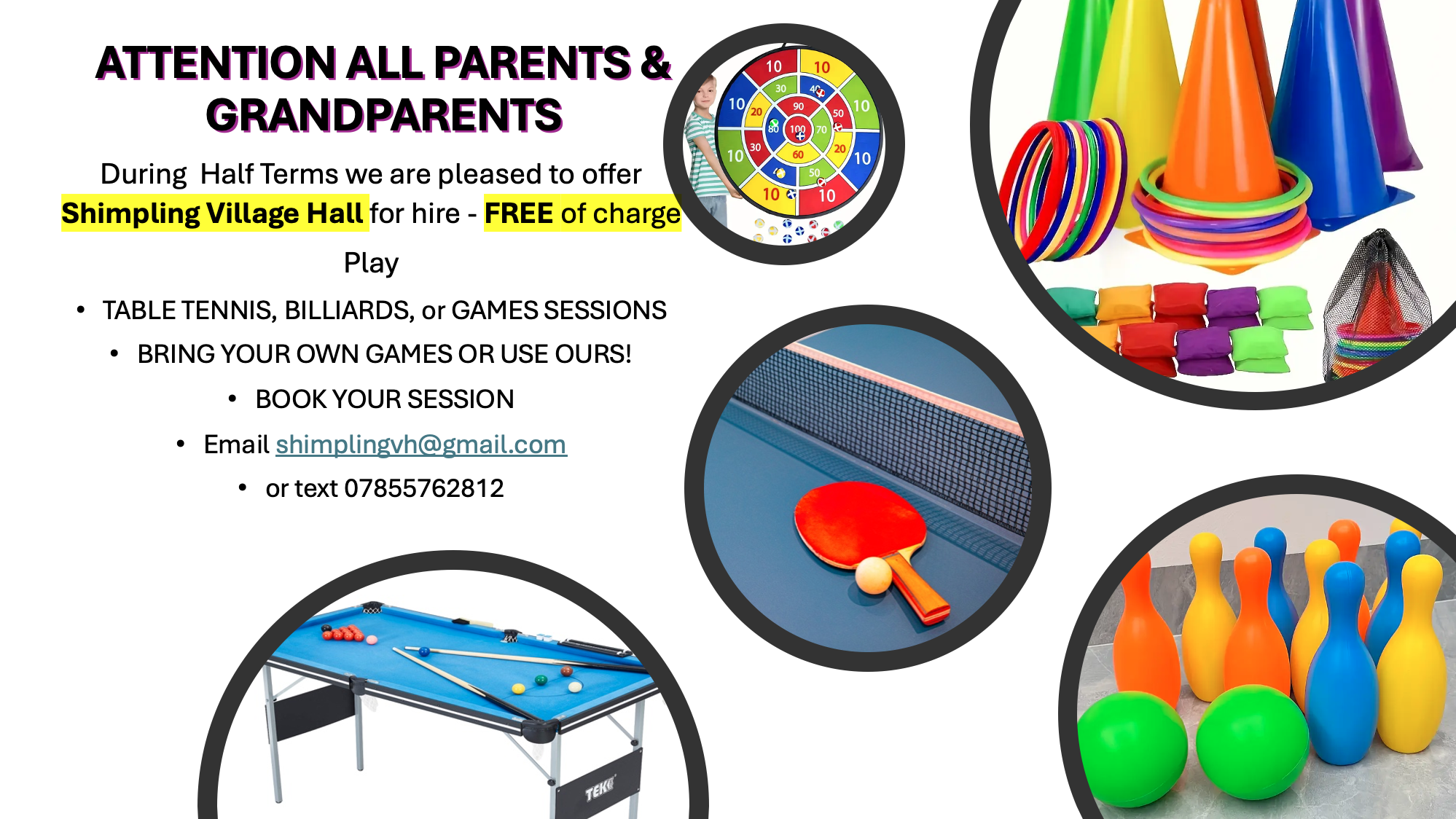 Current events at the Village Hall are listed on the left. To look at these in calendar form and to see any available dates, please go on to the Your Hall website which can be accessed via the link here.